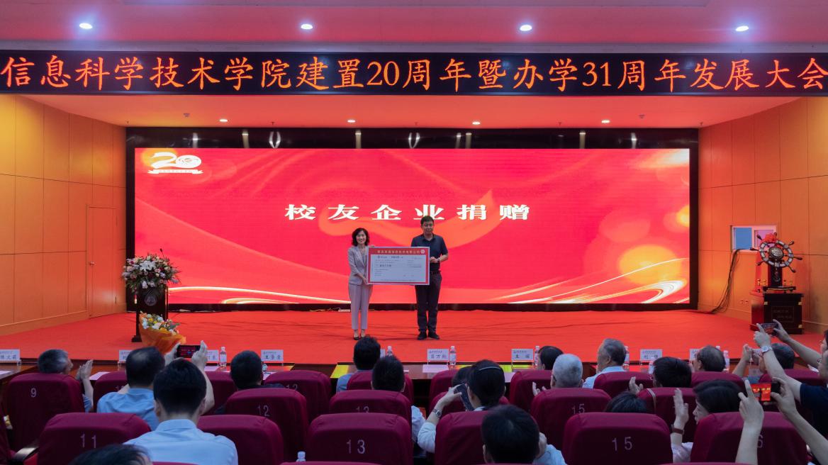 会上,王景景代表学院接受来自校友及企业的捐赠。她感谢众多校友通过捐赠资金、协助建设平台、开展校企合作以及提供宝贵建议等方式,展现对母校的深切关爱与坚定支持。