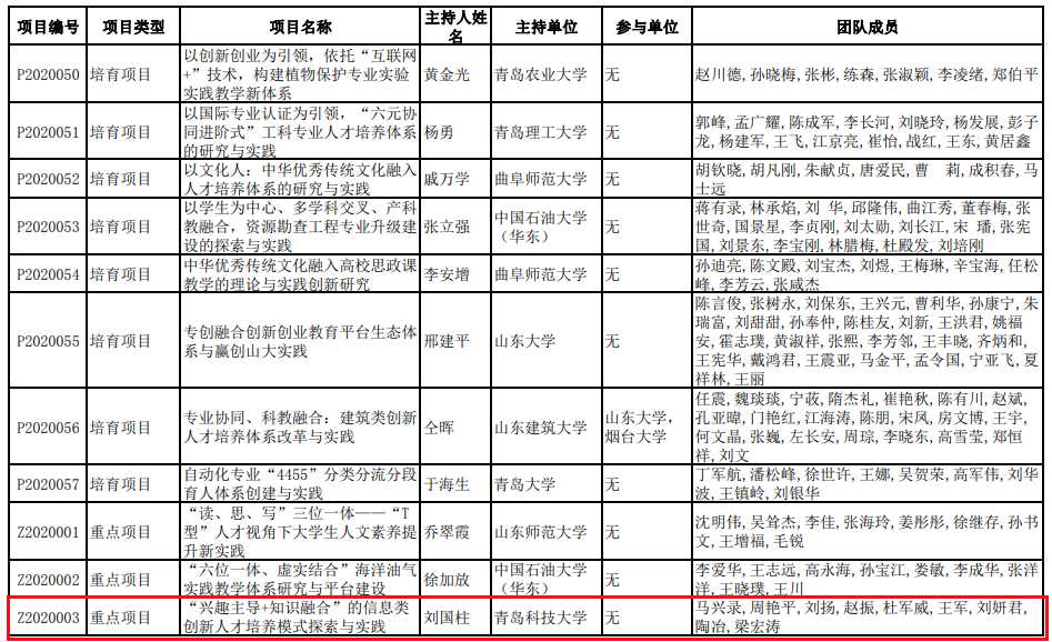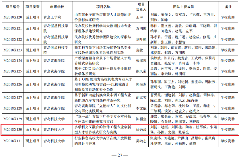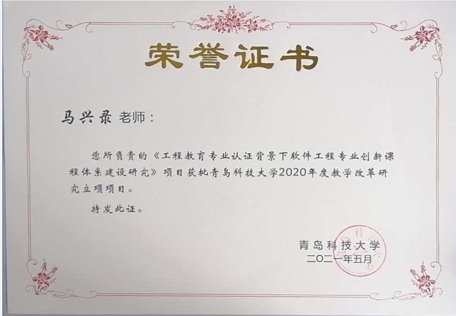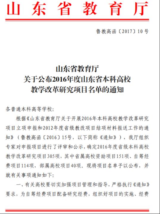 3、山东省本科教学改革研究项目--多学科交叉融合的软件工程专业创新型人才培养模式研究与实践