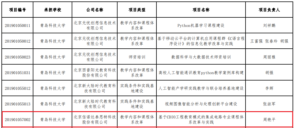 14、教育部产学合作协同育人项目--基于CDIO工程教育模式的集成电路专业课程体系改革与实践